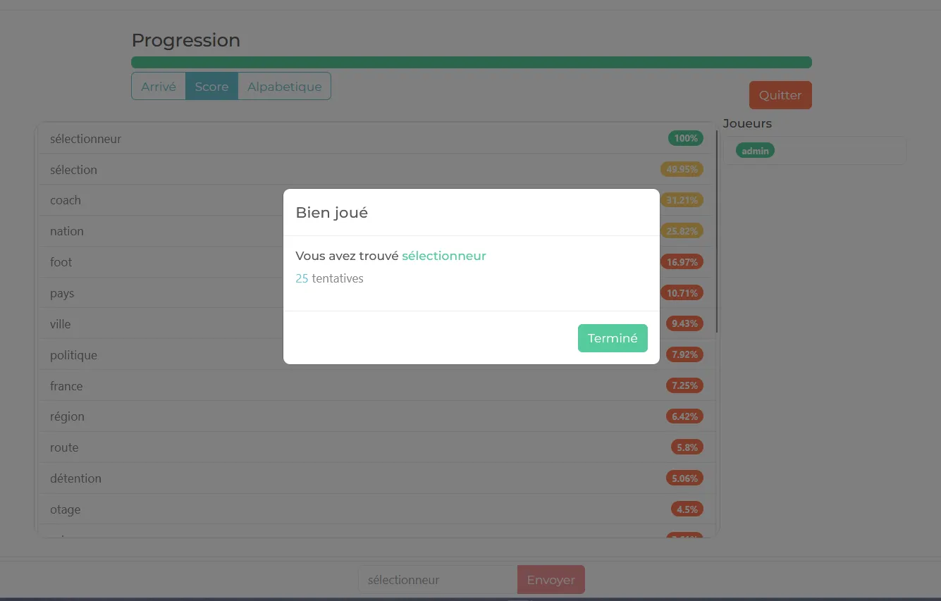 Le jeu repose sur des vecteurs sémantiques pour évaluer la pertinence des propositions.